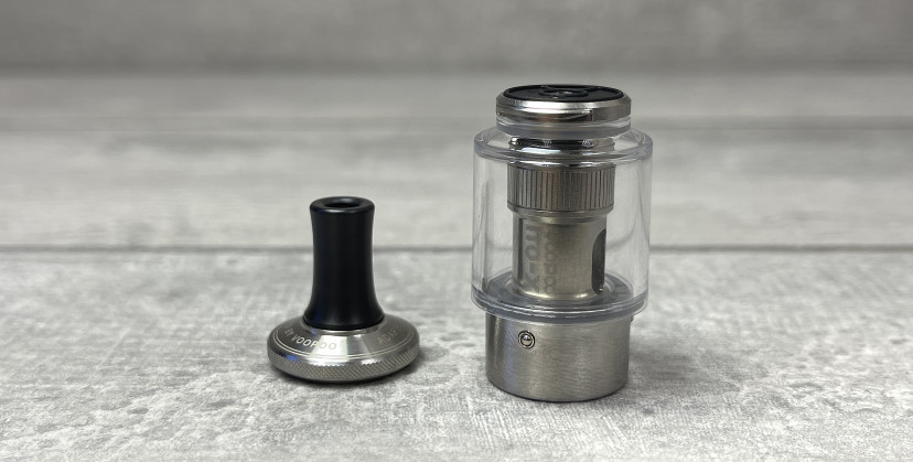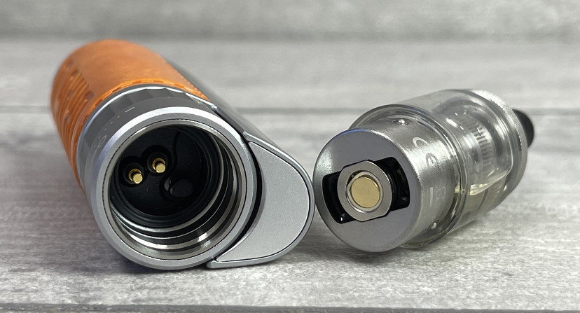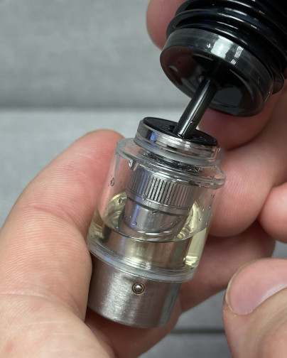 Что касается затяжки, тут все зависит от испарителя внутри. Можно получить вполне себе трушный MTL, можно что-то близкое к прижатой кальянке. Привычной системой обдува через отверстия поступились, забор воздуха, как ни странно, осуществляется сквозь незаметные пазы у основания Танка. Удар по горлу имеется при тугой тяге, а вот на свободной он практически незаметен.