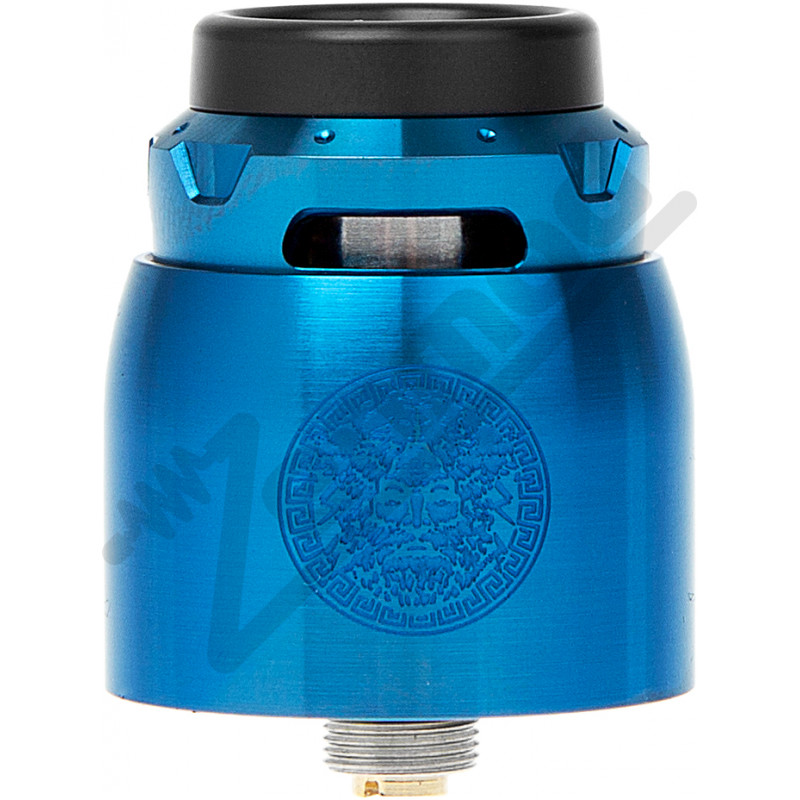 Дизайн GeekVape Z RDA получился лаконичным, при этом узнаваемые детали здесь остались. В первую очередь это, конечно, логотип в виде головы древнегреческого бога, вырезанный по центру юбки. Сам корпус из нержавеющей стали получил округлую форму, наверху находится кольцо регулировки обдува с насечками и плоский дриптип 810-го формата. В комплекте, кстати, есть запасной из ультема, он немного повыше. Диаметр на посадке у GeekVape Z RDA составляет 25.5 мм, а значит, на большинство боксмодов дрипка сядет без нависания. Высота девайса 38 мм, что довольно компактно.
